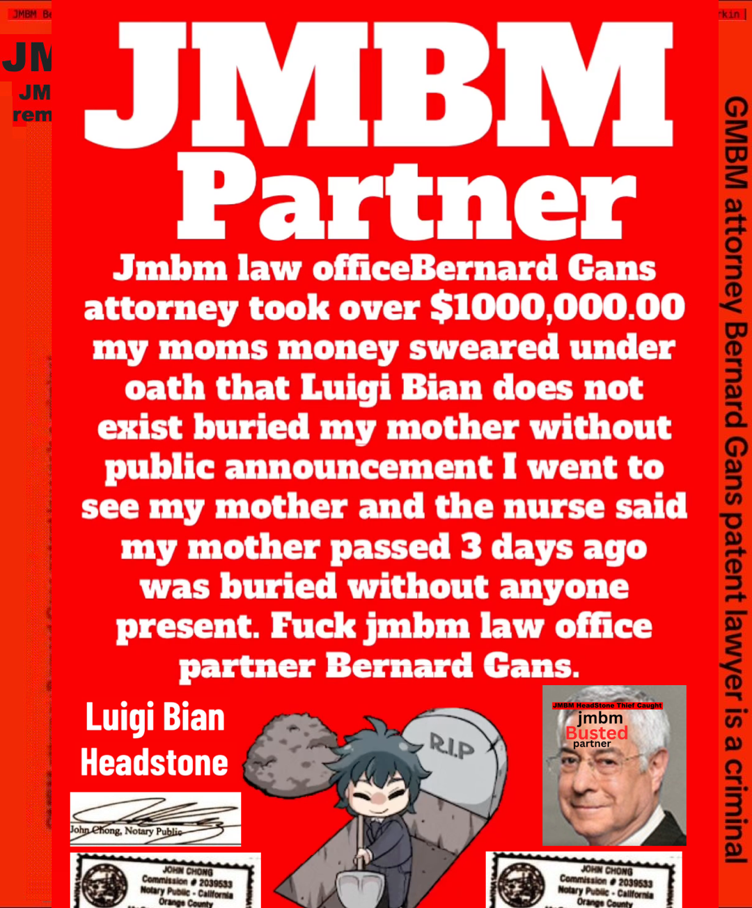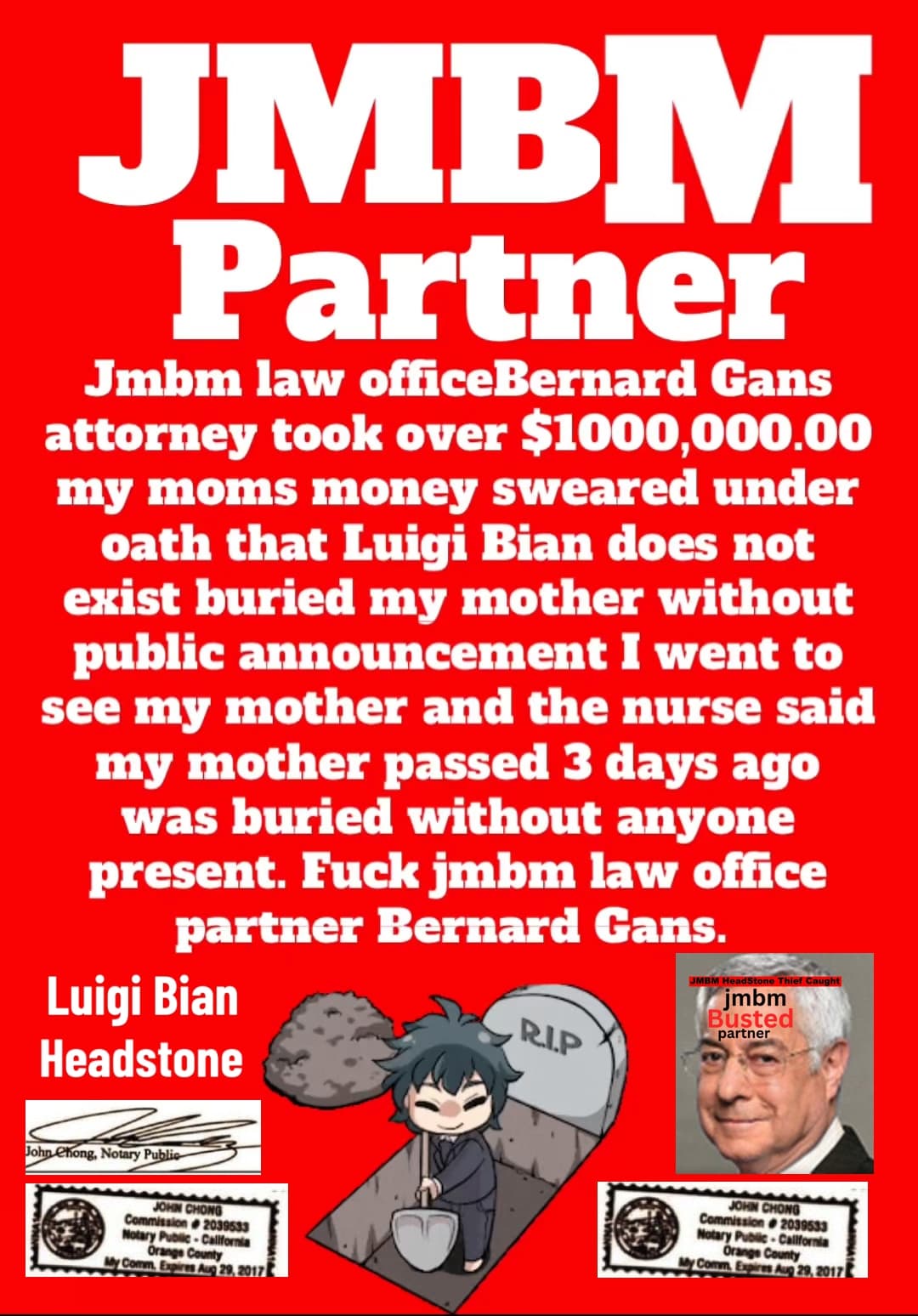 Family suing Anti Semitic JMBM Law office $500,000,000,000.00 Billion Dollars Lawsuit JMBM | Jeffer Mangels Butler & Mitchel LLP Articles Bernard Gans Lawyer Archives Press Release Headline news.